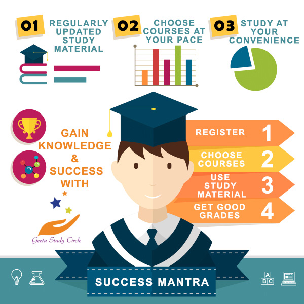Geeta Study Circle, offers students the opportunity to excel in all subjects. Our experienced tutors and updated study material ensure that you understand the concepts that are so very important in doing well at studies. Our well thought out approach that has evolved over decades of cumulative teaching experience will help students achieve good grades and nurture a logical approach towards studies. With online study material, students have the flexibility of studying and revising at their own pace, from the comfort of their homes.